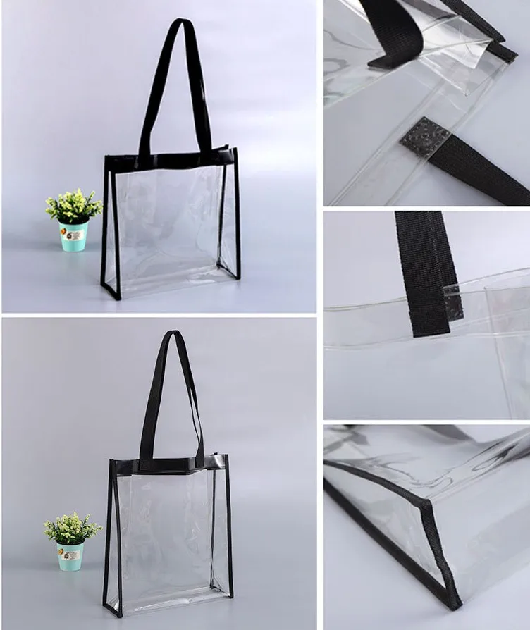 product | Clear Tote Crossbody Shopper Bag Handles Shoulder Strap PVC Plastic Vinyl |