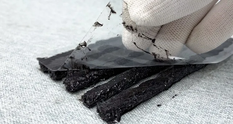 ▪Schneiden Sie den überschüssigen Reparatur Streifen im Lot des Reifens.