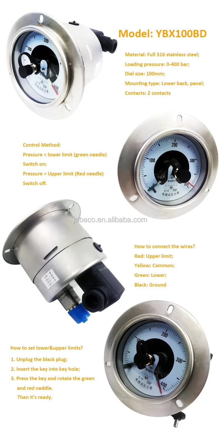 Beco 100mm all stainless steel electric contact pressure gauge manometers Diaphragm pressure gauge with switch