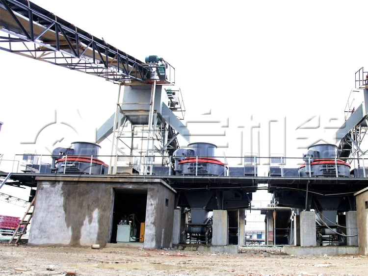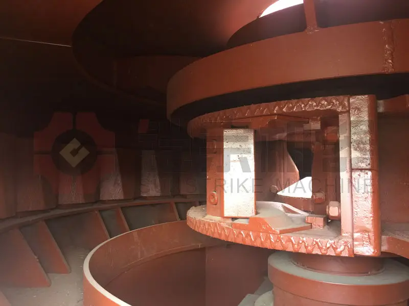 Material falls into the fast rotating impellers from the top of machine and crushes with the material distributed around the impeller under the effect of high speed centrifugal force. After the impact with each other, the material is crushed between impeller and cabinet and is discharged from the bottom. It can cycle many times with the close circuit and the sizing device will control the granularity of finished products.
