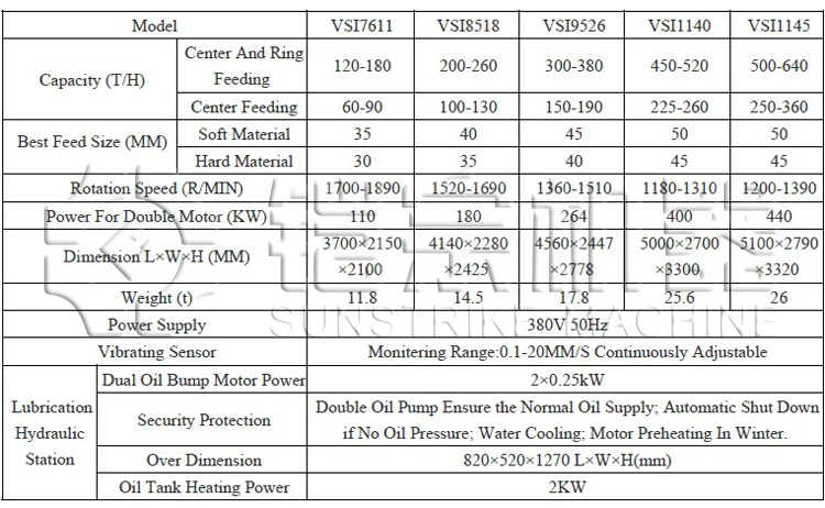 Durable Tungsten Alloy Wear Parts VSI Crusher Sand Making Machine Technical Parameters: | ||||||