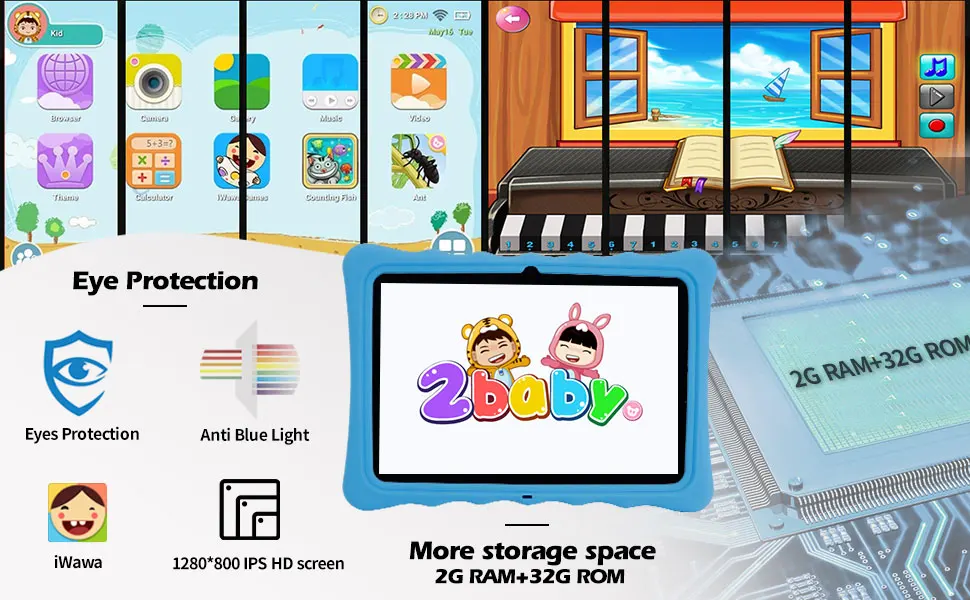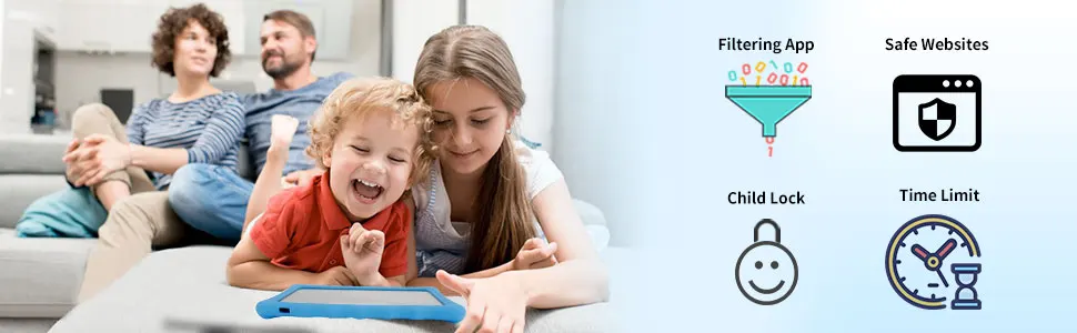The protective case protects your kids tablet from dust, bumps and falls. The foldable stand is very suitable for use at home or school. The silicone case that comes with the tablet has a design to prevent side and corner collisions, which can protect the tablet well.