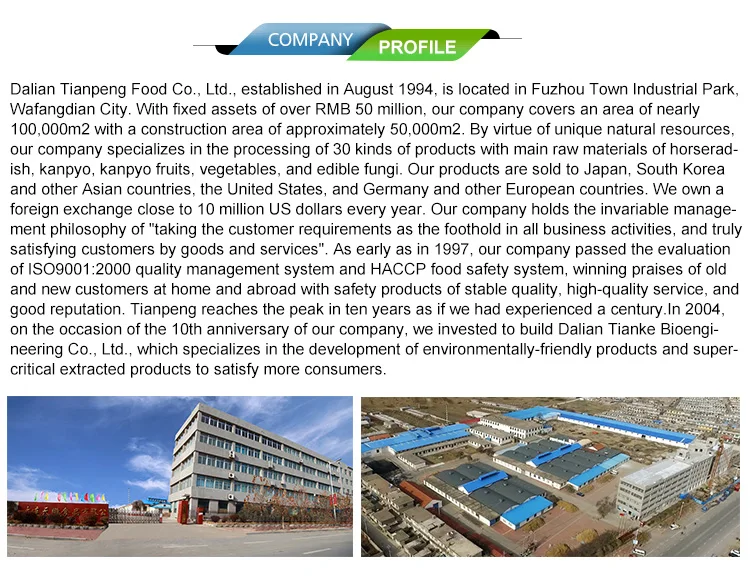 We not only have factory, we covered 5000 acres cultivation base. The horseradish products take more than 30% of the global market.So we have the most competitive price.