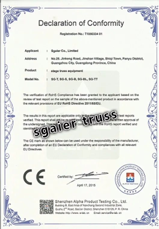 Sgaier Truss located in Panyu, Guangzhou, China. All the products will be shipped from Guangzhou port or Shenzhen port.