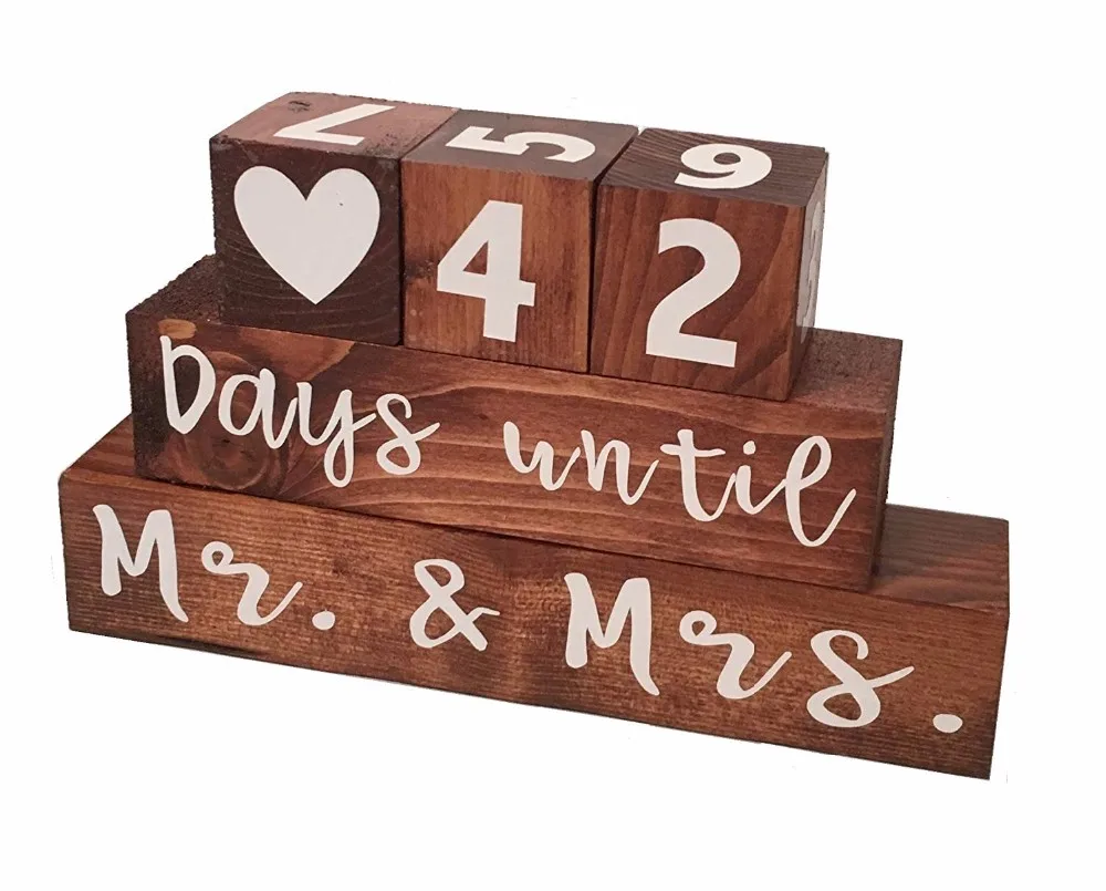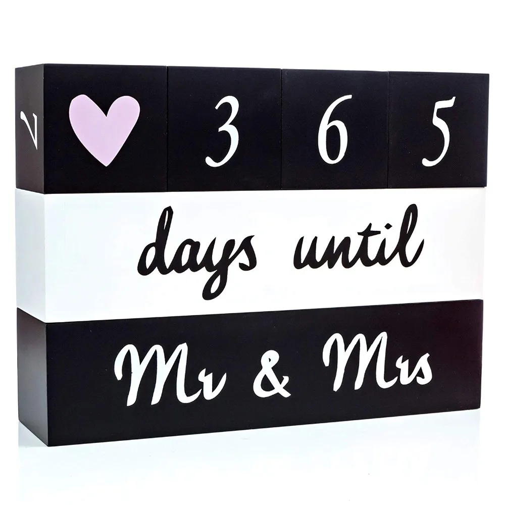 Product name | Long Lasting Engagement Mr and Mrs Wood Block Wedding Countdown Calendar |