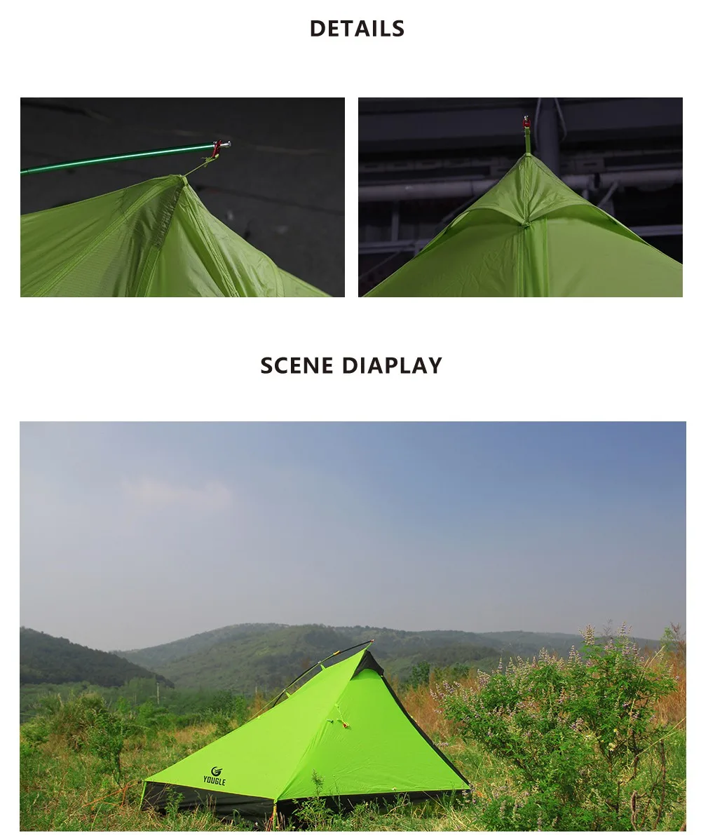 -DOUBLE WALL DESIGN & EXTRA STORAGE SPACE brought by the fly sheet provides enough shelter for your pet dog, backpack, shoes and other equipment. YKK zipper entranced, the No-see-um Mesh ensures the ventilation while keep the mosquito outside. Stitched floor to prevent moisture.