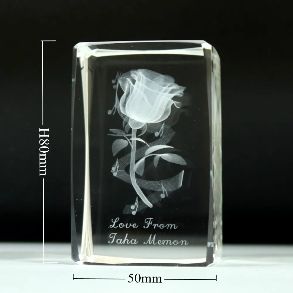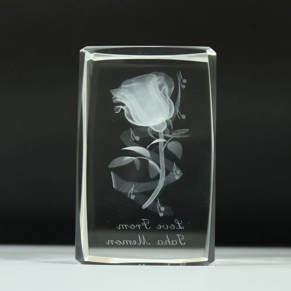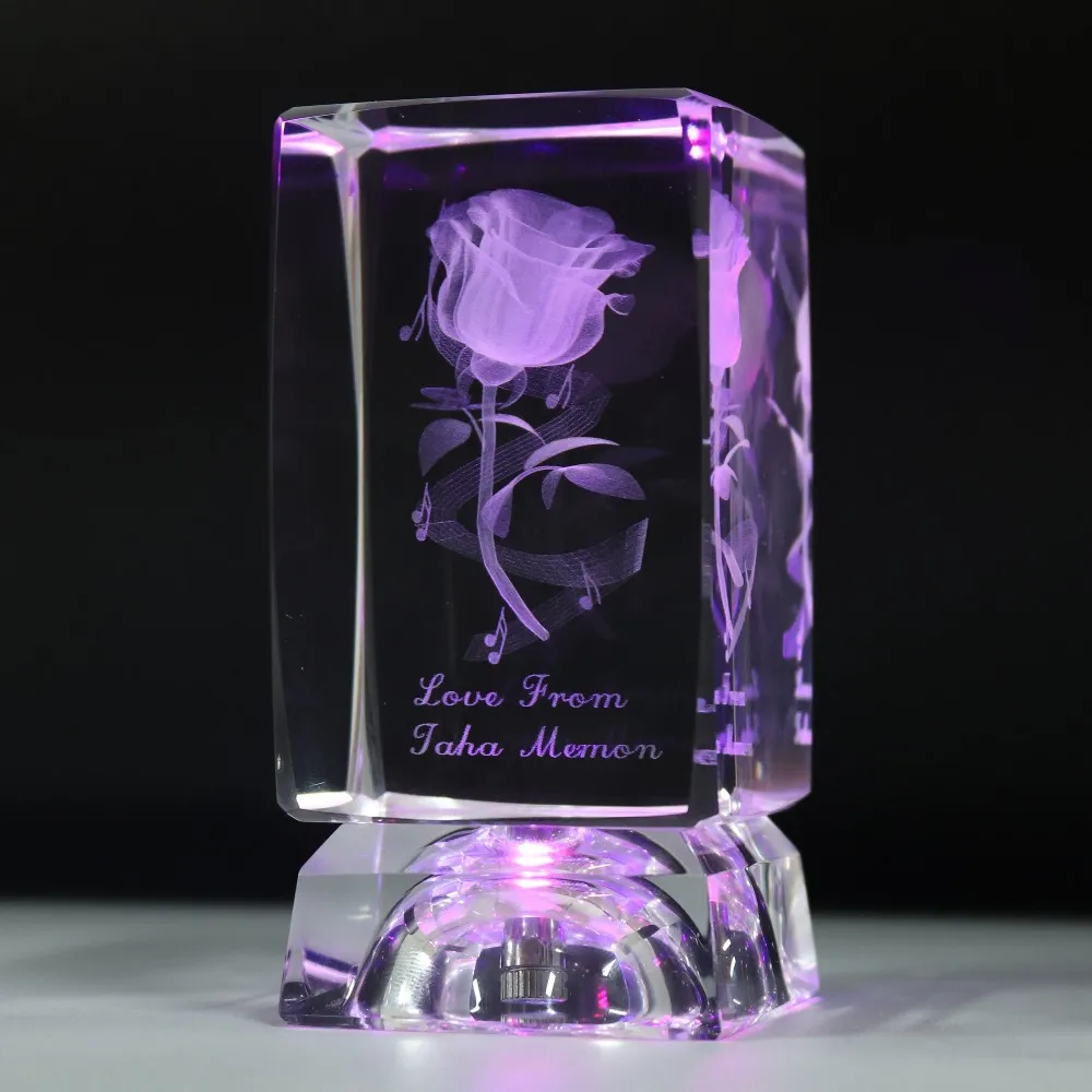 Name: | 3D Laser Engraved Crystal Glass Rose Flower Cube With Led Light Base | ||||