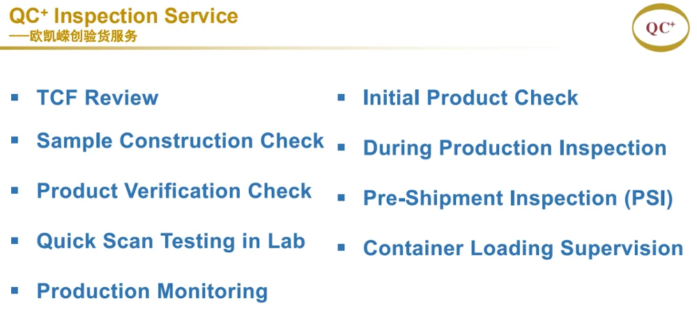 QC+ Inspection set the principle of “cooperation, win-win” business philosophy, adhere to the “customer first, service first” principle, dedicate to provide customers with satisfactory testing and certification, factory inspection and inspection services. QC+ is our brand, is a our service conception, to provide customers with high quality service is our commitment. QC+ will become your most reliable and long-term partner.