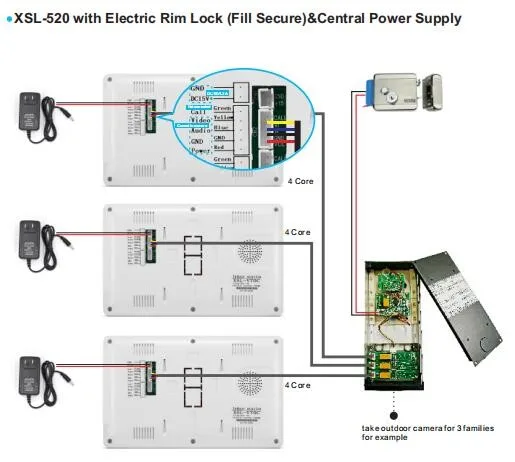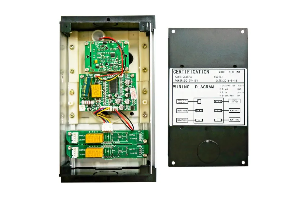 | Video intercom | Multi apartment video intercom system, 9" tft lcd color video door phone | Charger | •Adapter input voltage: AC100-240V 50Hz-60Hz •Adapter output voltage current: DC15V 1500mA(1.2A) |