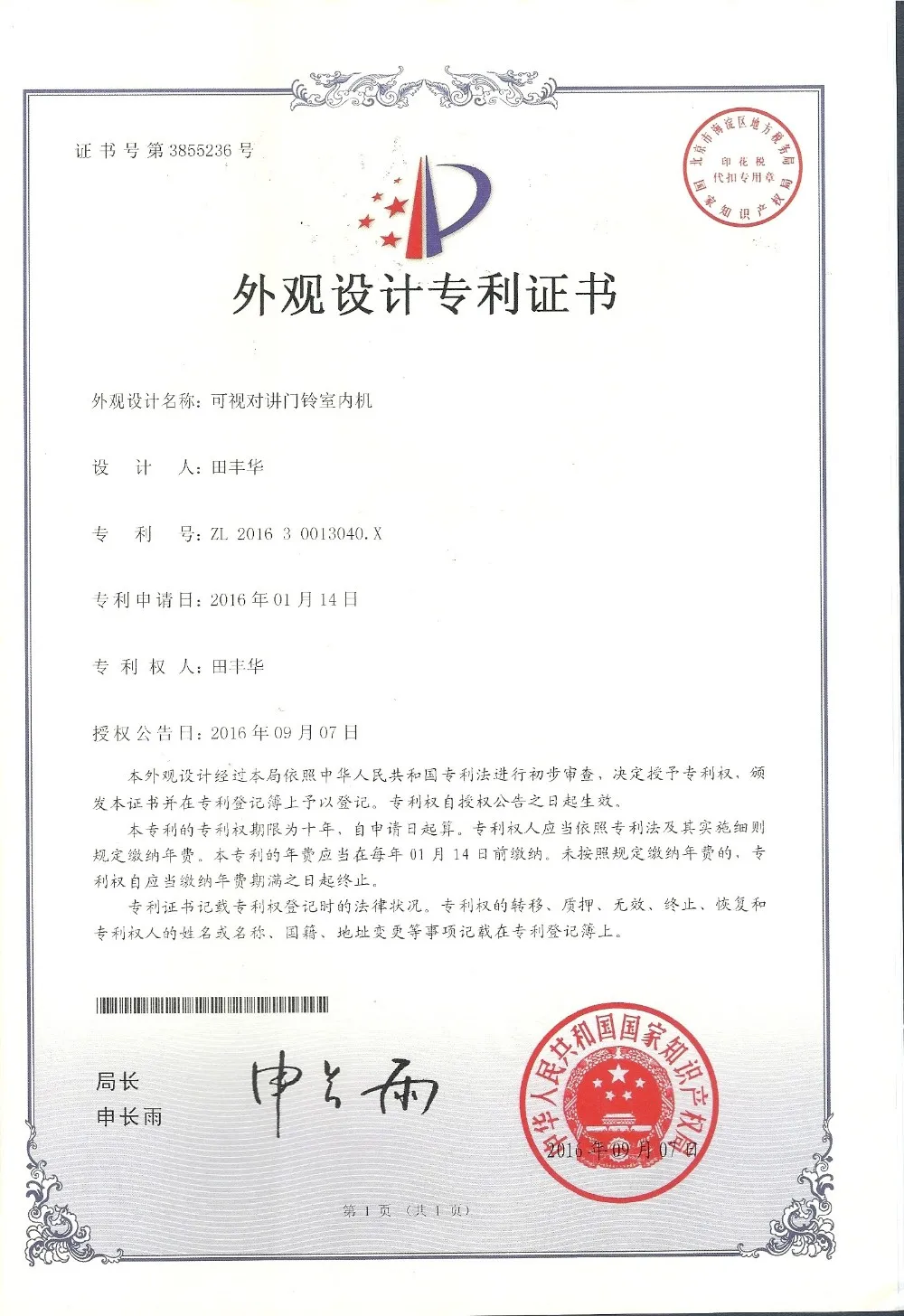 •Function: Intercom(Handset/handfree),Monitor ,Unlock the door ,12 kinds of rings