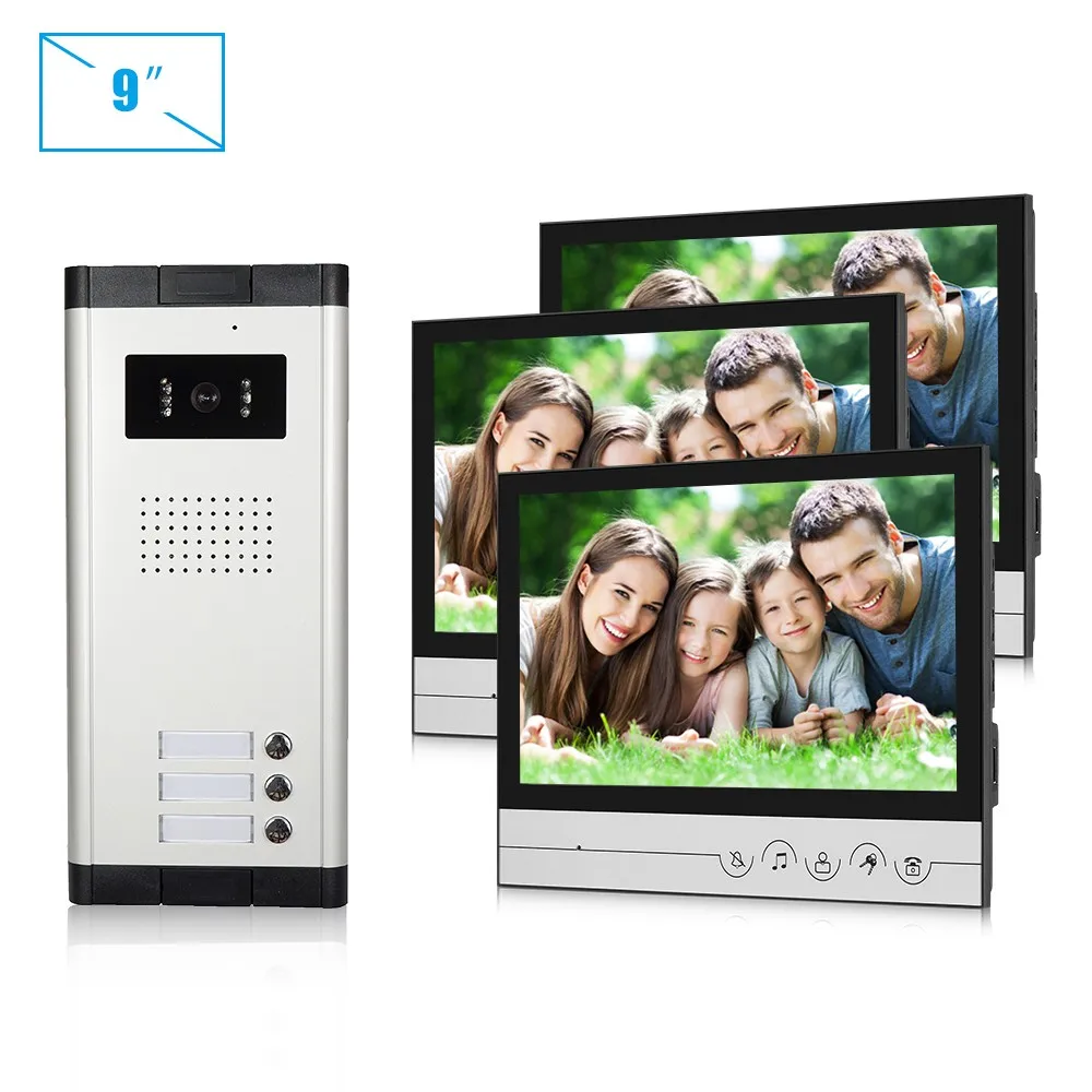 | 2 apartments family | Up to 12 buttons,one button control one monitor.Also you could add room number on outdoor camera.It is more convenient for the visitor or courier to talk the right person. |