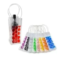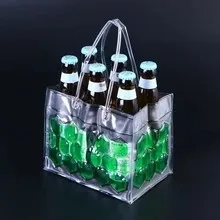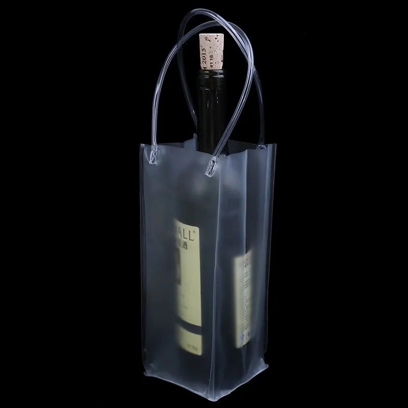 1PCS Durable Clear Transparent PVC Champagne Wine Ice Bag Pouch Cooler Bag With Handle 10*10*24cm