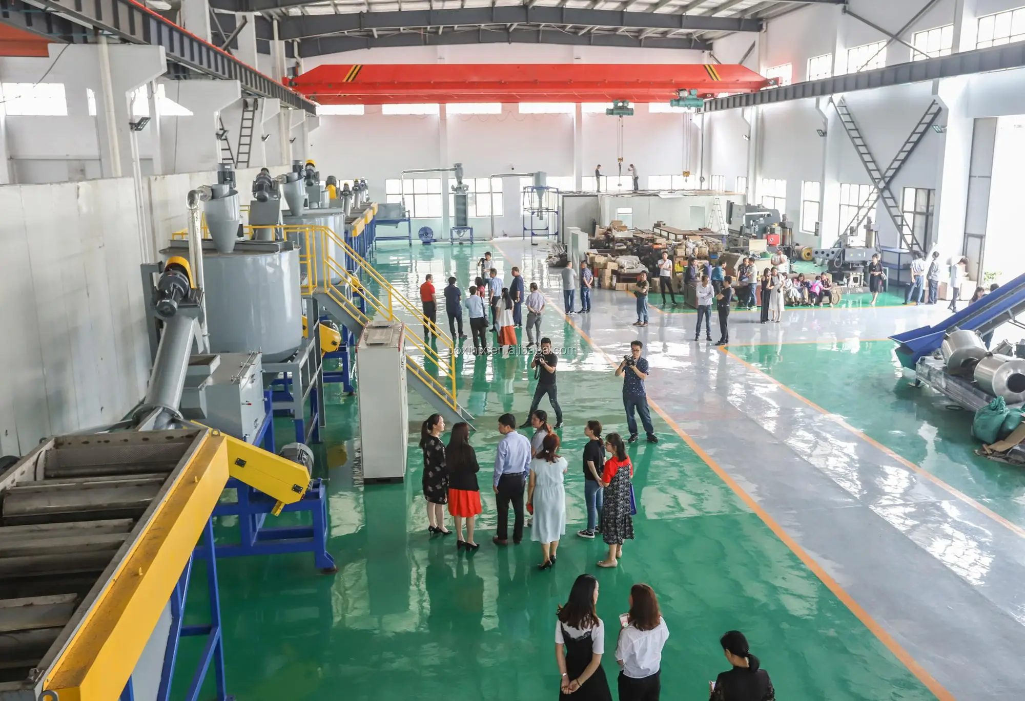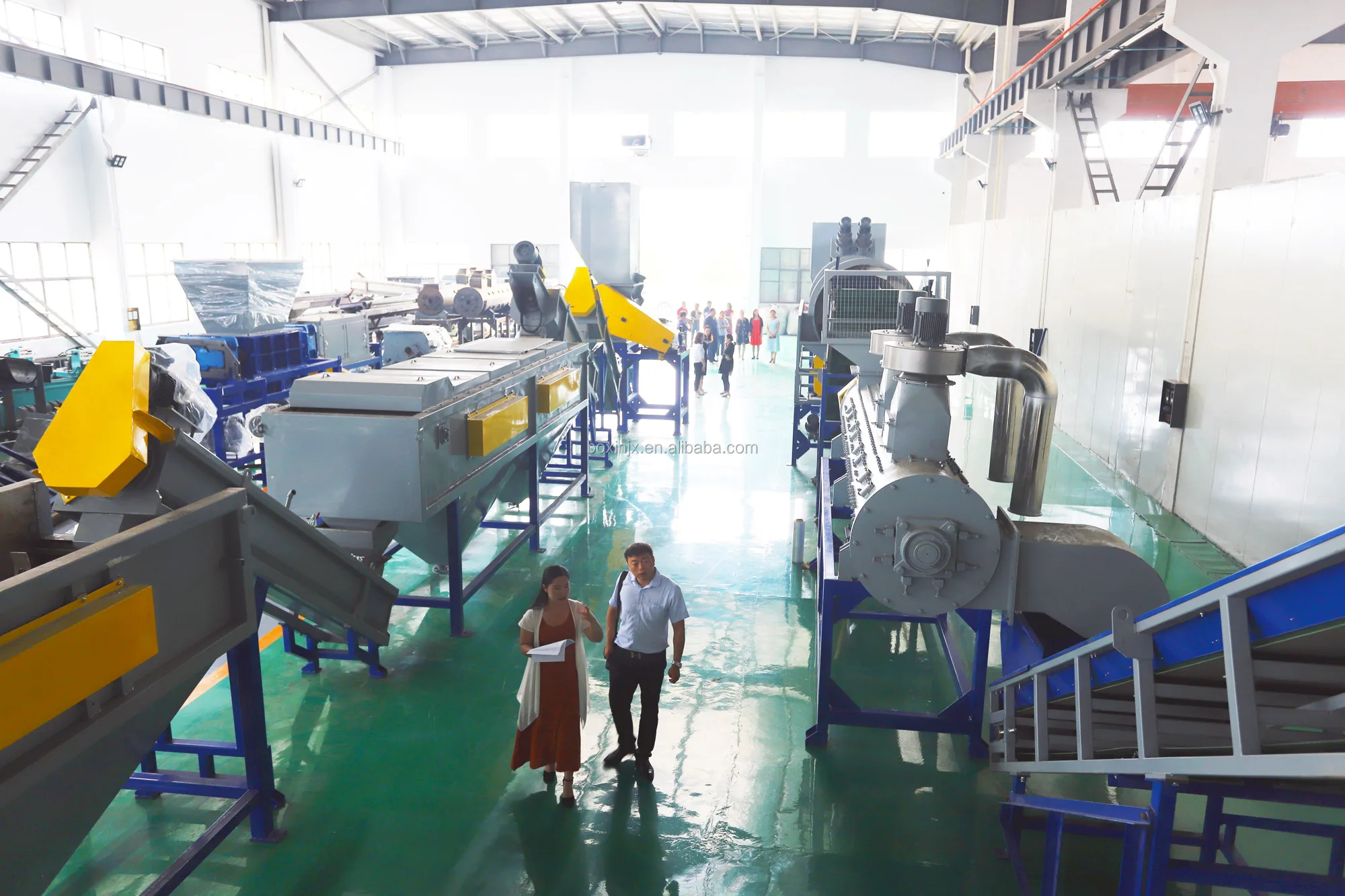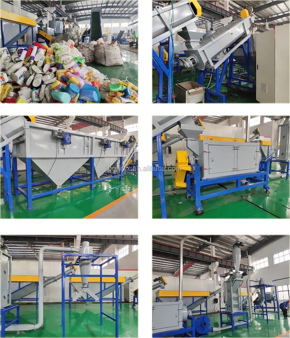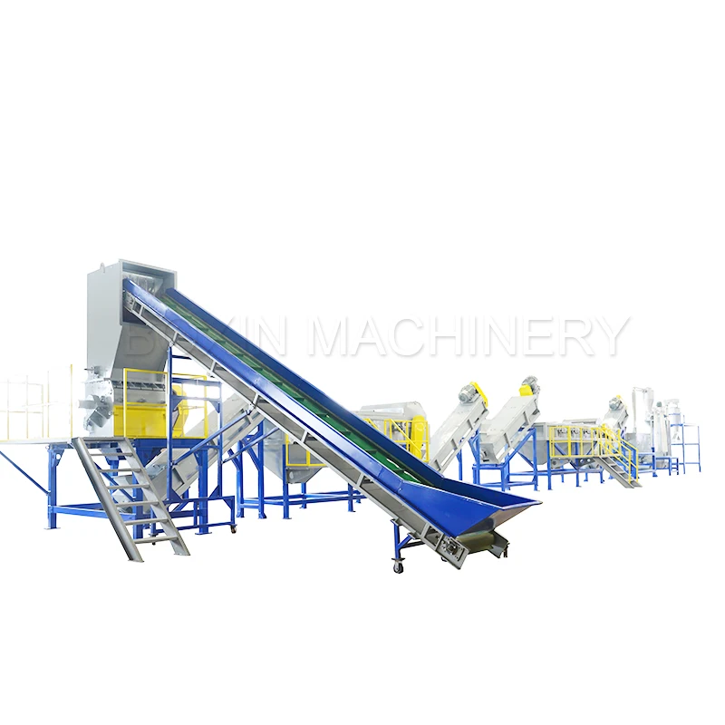 Belt Conveyor → Crusher → Friction Washer → Hot Floating Washing Tank → Cold Floating Washing Tank → Friction Washer → Dewatering Machine → Zig-zag label blower → Sio.