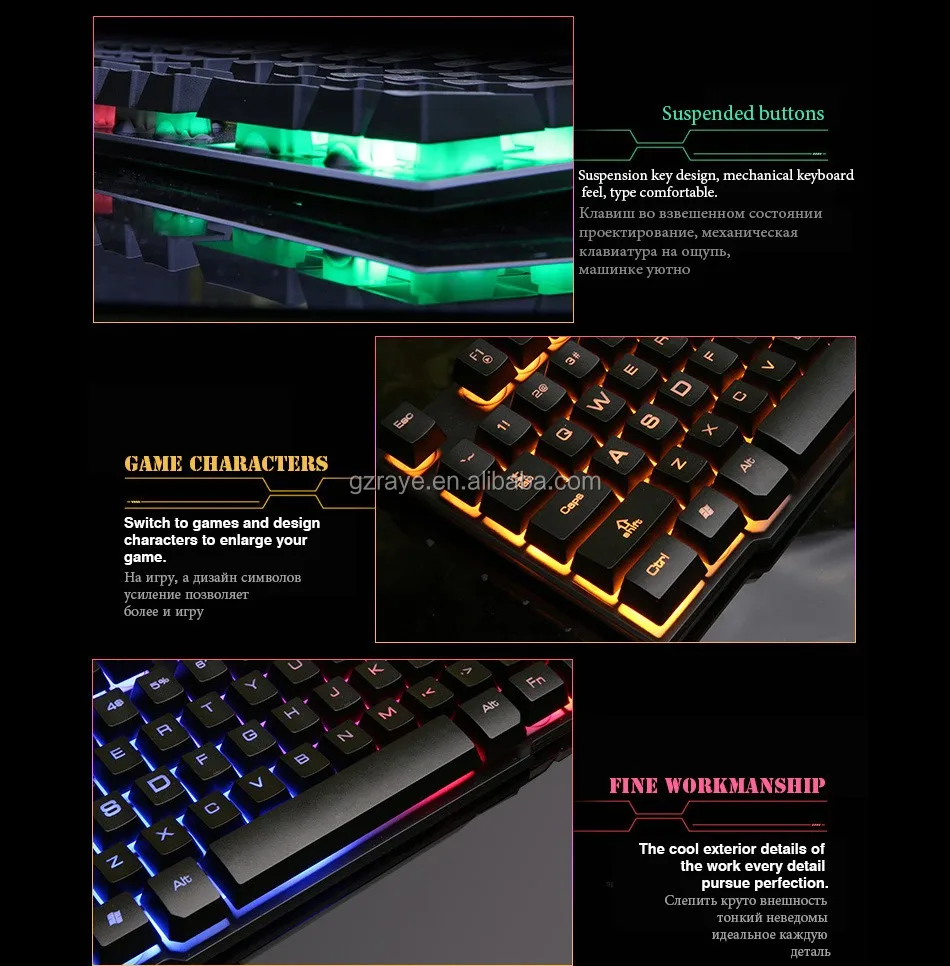 Russian 104 luminous keyboard Russian luminous mechanical feel keyboard three color rainbow mechanical keyboard