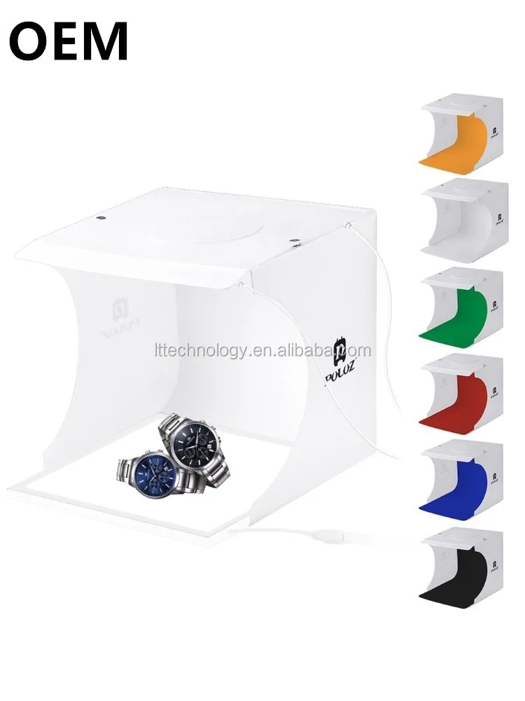 With 6 EVA backgrounds(Black, White, Orange, Red, Green, Blue), and built-in LED panel light and USB cable(you should prepare a USB charger, power bank, or USB hub to power it).