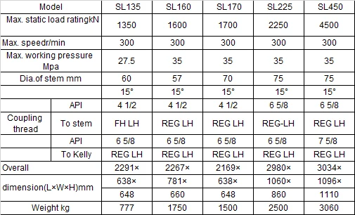 XSL Swivel with spinner is a combination of swivel and kelly spinner, driven by air motor or hydraulic motor, with keyless connection adopted between spinner and central pipe of swivel. It is designed and manufactured according to API Spec 8C “Specification for Drilling and Production Hoisting Equipment” .