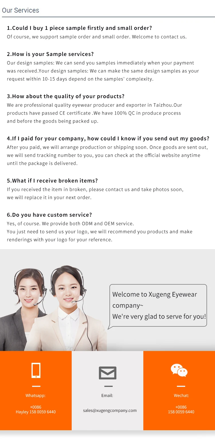 YIWU XUGENG TRADING CO.,LTD is a professional manufacturer in production of sunglasses, reading glasses, optical frames for more than 10 years.