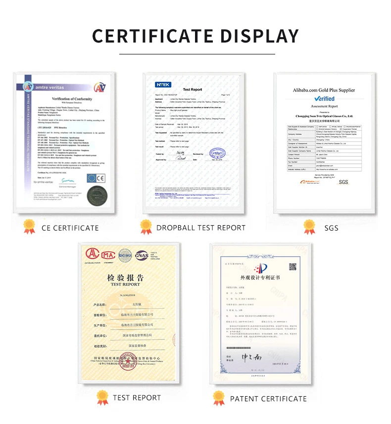 Our factory covers more than 2000 square meters, 80 workers, monthly production capacity 150000 pieces and passed CE, UV 400, ISO 9001.