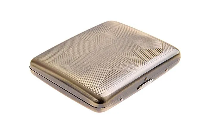 Retro Metal Cigarette Case Box - Double Sided Spring Clip Open Pocket Holder for 18-20pcs Cigarettes
