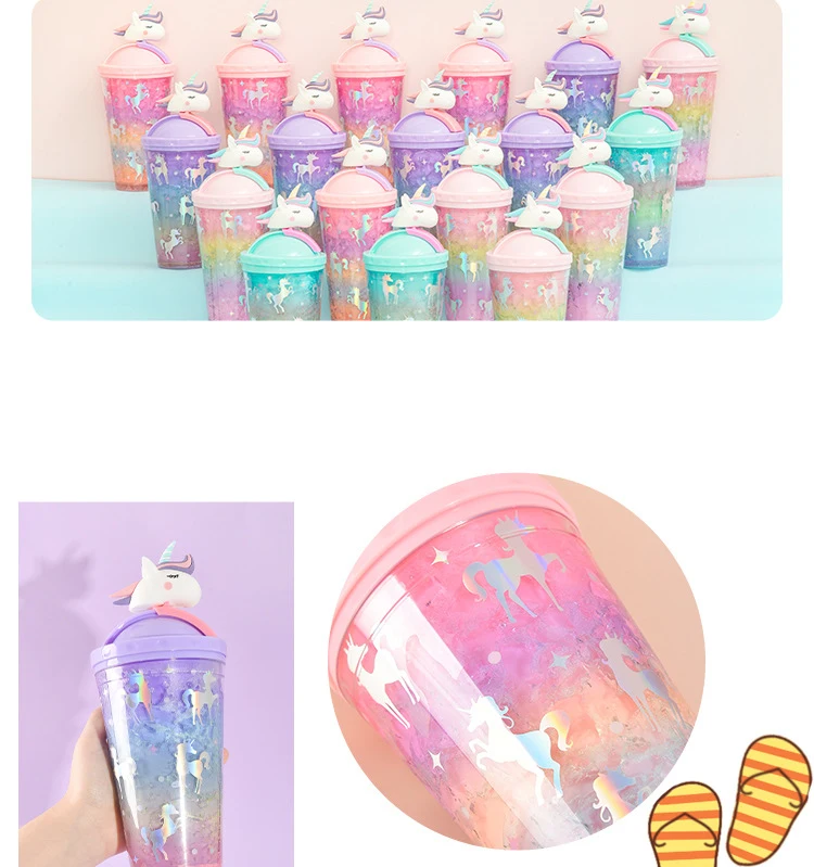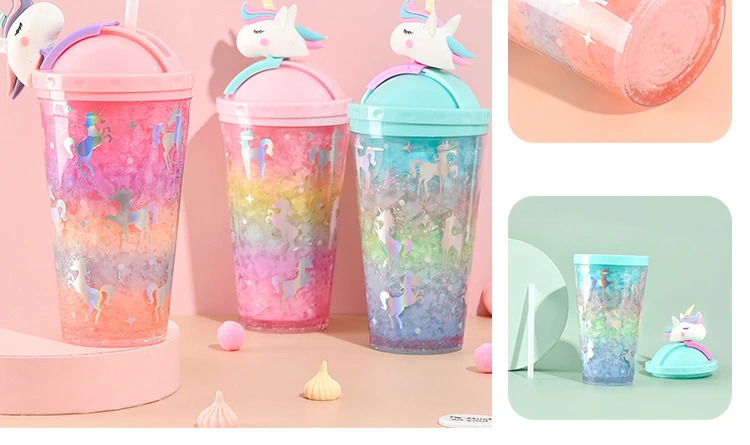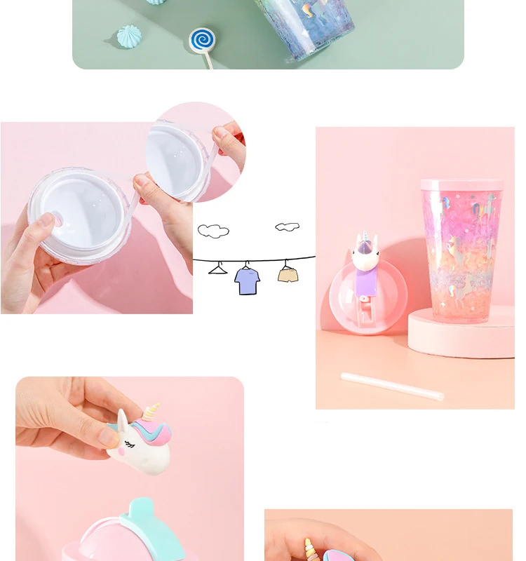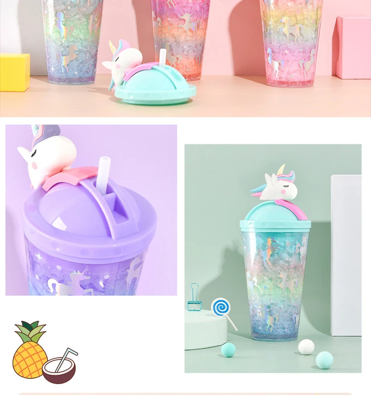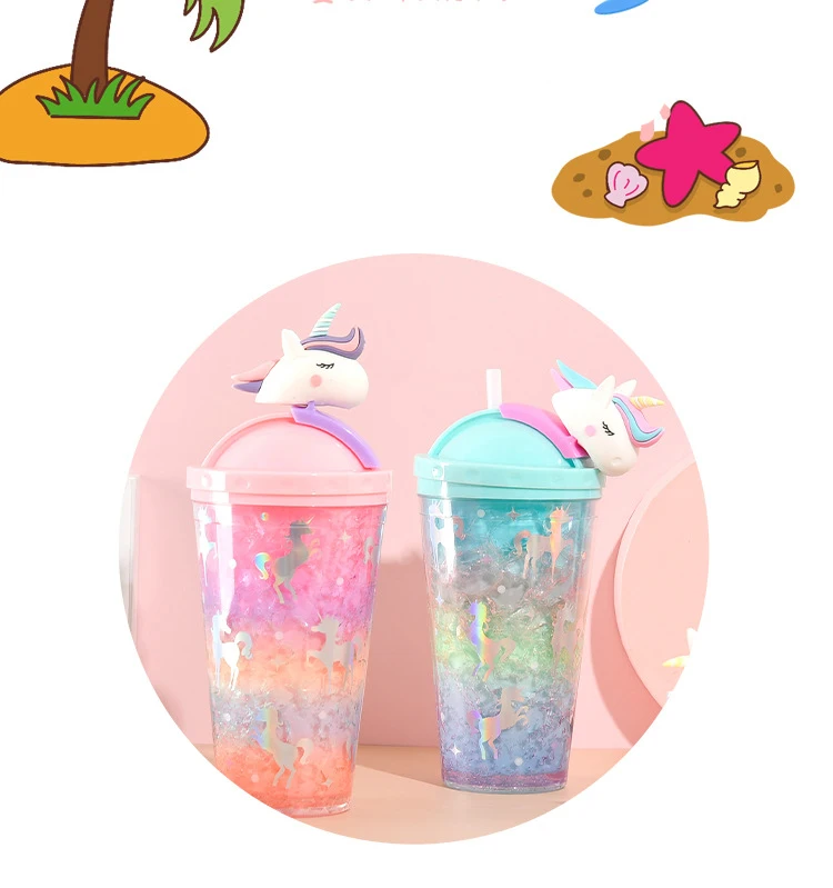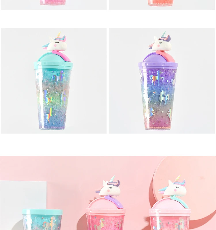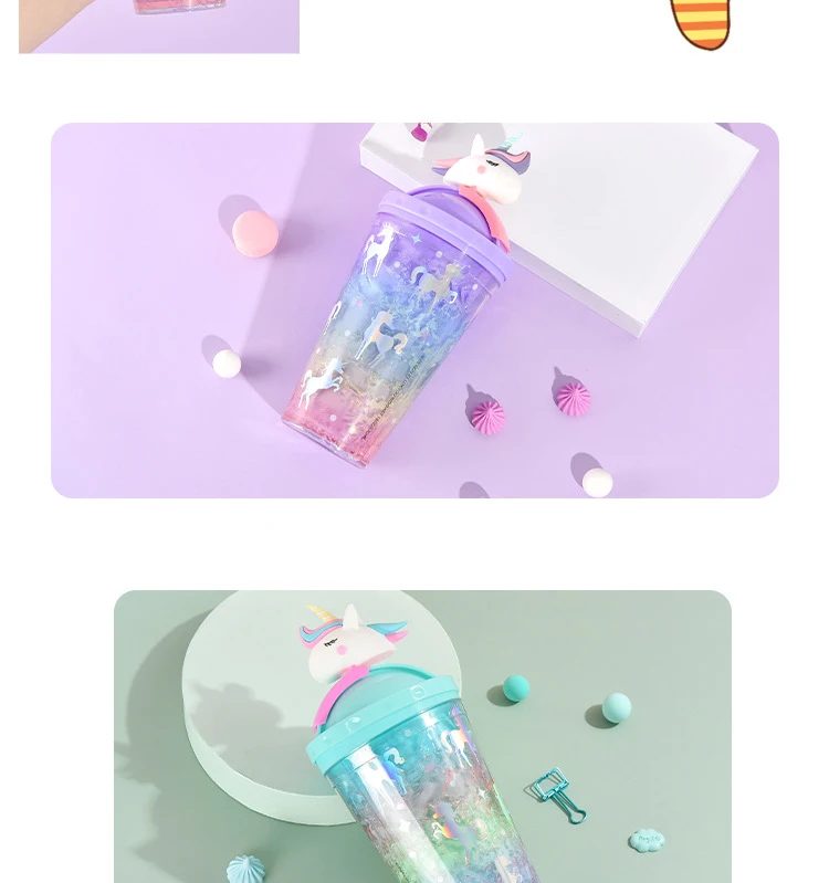 Product name | Double Wall Plastic Water Tumbler With Lid Summer Cute Unicorn Water Bottle With Straw |