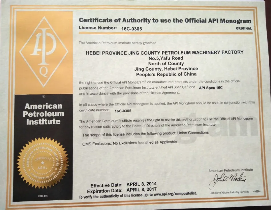 Allow the product bellow under the API standard: