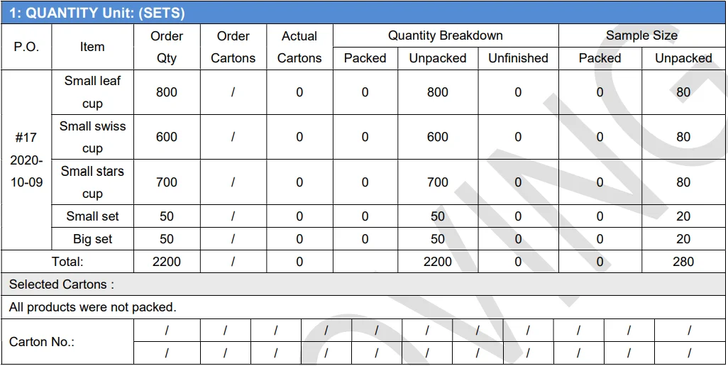 Inspection Type | Before-production / During-Production / Pre-shipment Inspection | ||||||