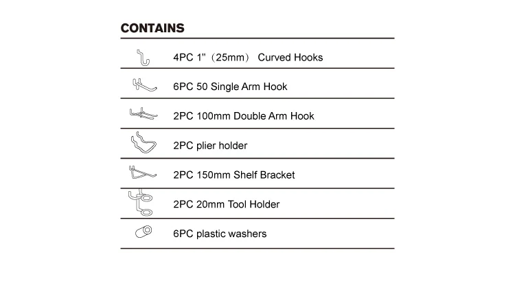 Application | Ideal for 1/8" and 1/4" peg board |