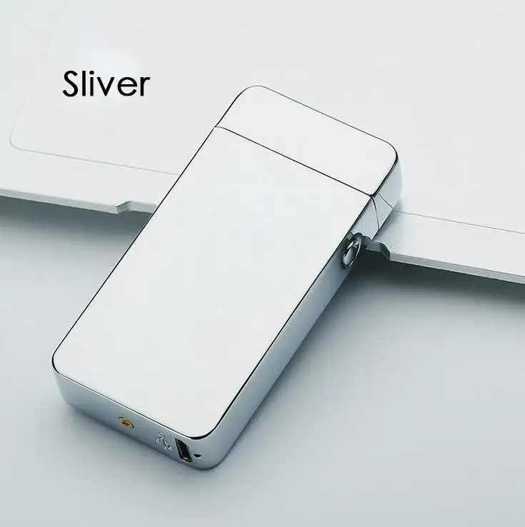 Dual Arc Electronic Lighter 10 Colors Windproof Ultra-thin Metal Pulse USB Rechargeable Electric Arc Double Fire Lighter