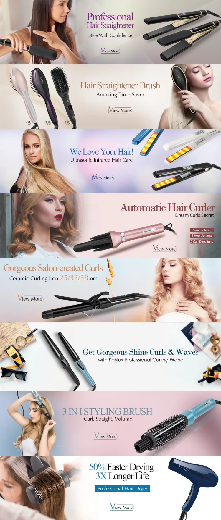 1) Professional - Kaylux was founded in 2011, specialized at designing and manufacturing hair straighteners curling irons, hair straightening brushes, curling brush and hair dryers etc.