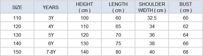 Size | 110CM,120CM,130CM,140CM,150CM | ||||