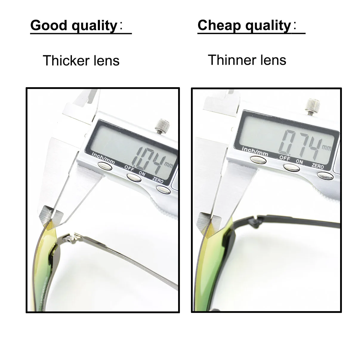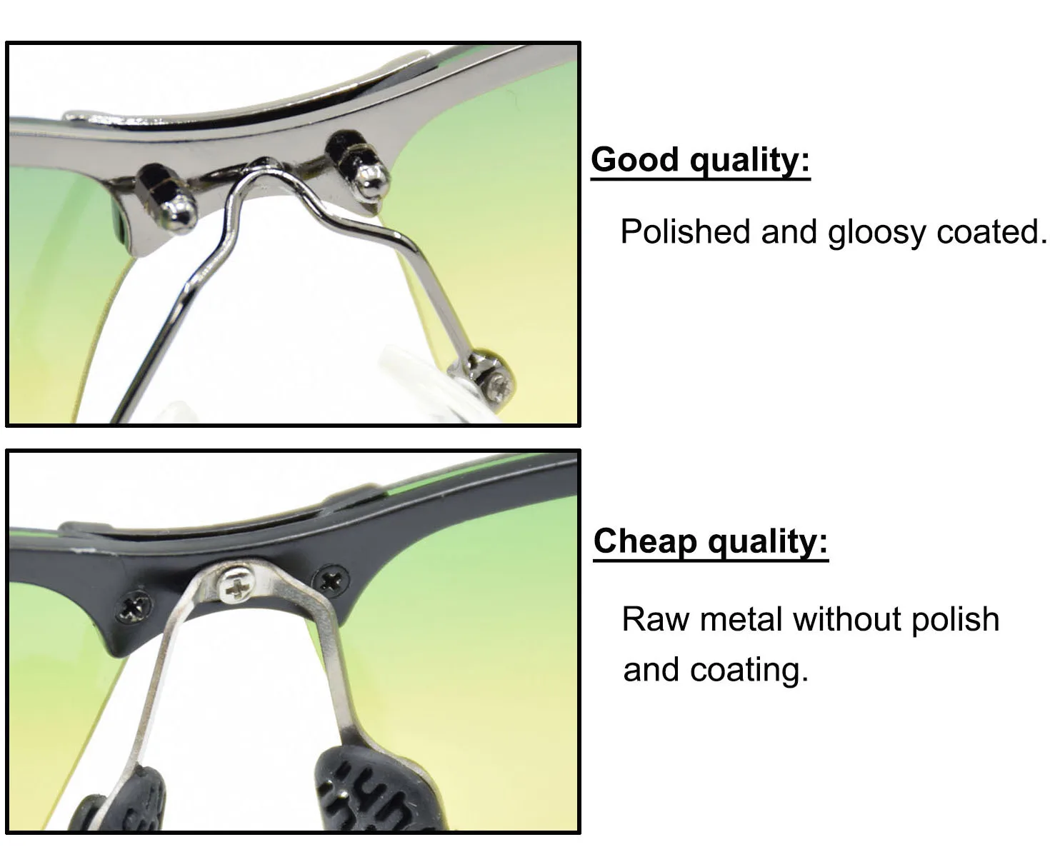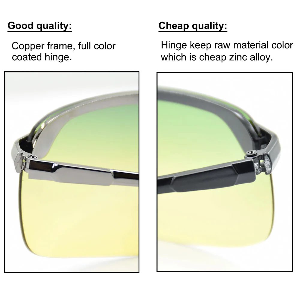A: We sell only middle and higher quality level of sunglasses, reading glasses and high quality of optic frame. 100% quality control during production.