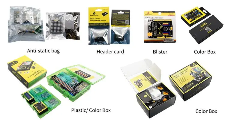 - Package Options 1.Anti-static Bag 2. Color Box 3. Header card 4. Blister 5. Plastic Case
