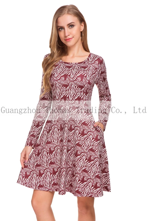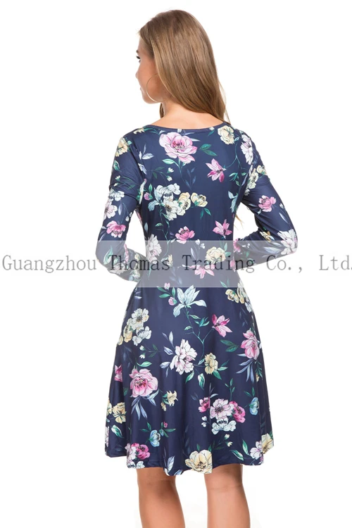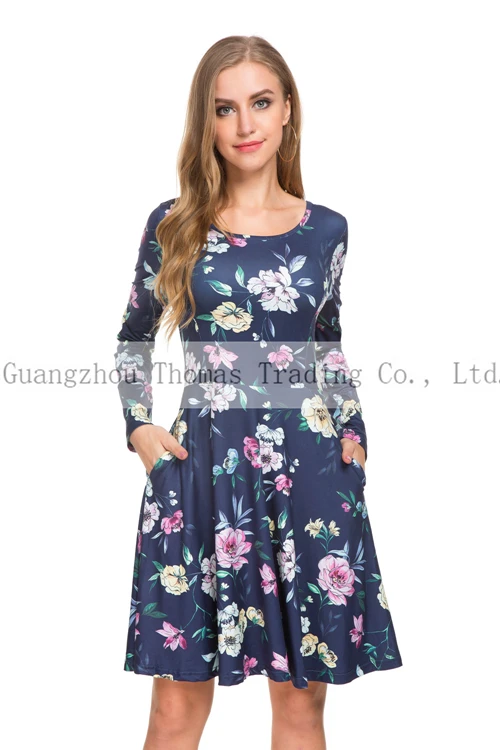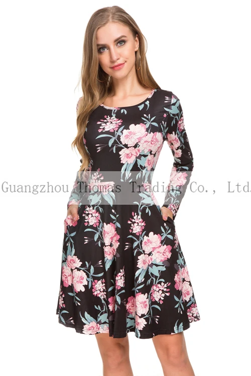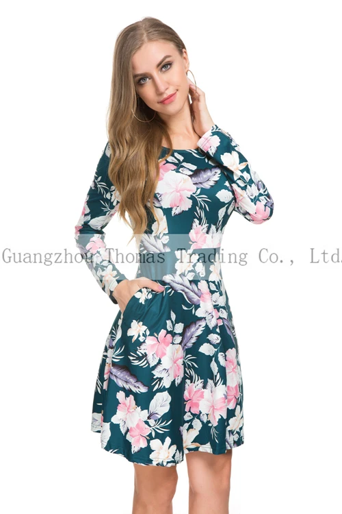 Production Name | New Design Floral Long Sleeve Formal Work Women Dress With Pockets |