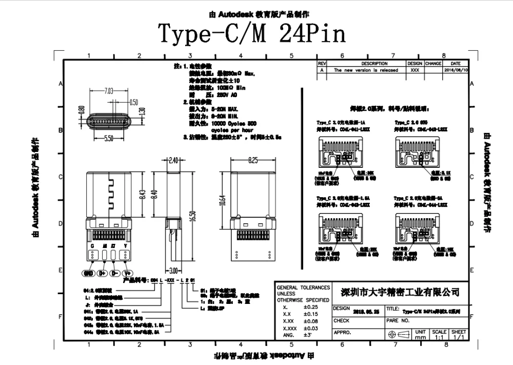 | Type | Solder Type | Contact | Copper with golden plated |