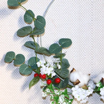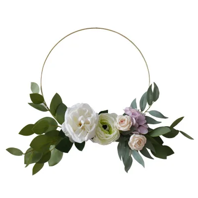 Metal circle with artificial flower, the diameter is 30cm, the length is 43cm, for home decoration, It's a very nice and a high-value Nordic wall hanging set, fresh, romantic and elegant.