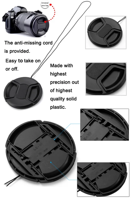 The anti-missing cord is provided. Unique ergonomic snap on design allows it easy to use when the lens has hood, whether your hand are tender or coarse, it will take on or off easy when you using the hood, make your inspiration always on line.
