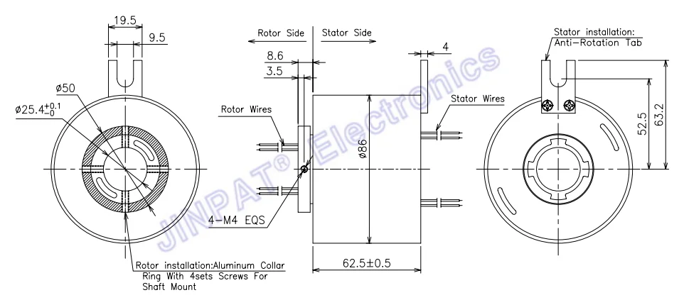 LPT series are through-bore slip rings (the center hole can pass through the drive shaft, gas-liquid passage; it can also integrate high frequency, fiber, encoder, waveguide, gas and liquid and other joints). The use of advanced fiber brush ensures reliable contact under extremely low friction. The center hole is available from 0 to 1000mm. The current is from mA to 5000 amps. The voltage can be up to 10000 volts, which can fully meet different needs of transmission.