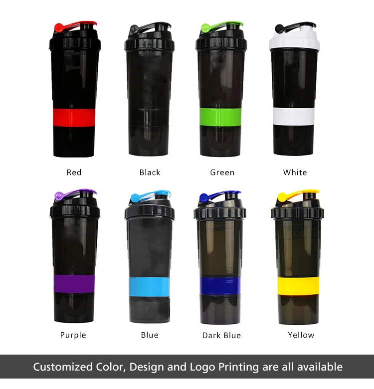 500ML+250ML Protein Powder Storage Three-layer Plastic Bpa Free Shaker Bottle With Lid