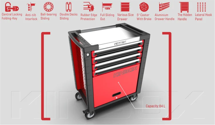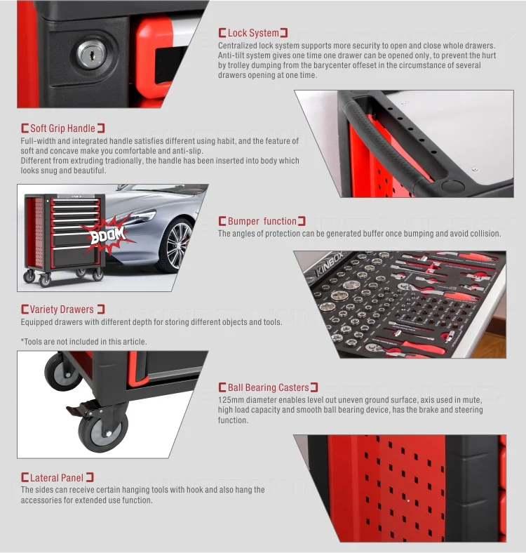 Kinbox Stainless Steel Worktop Trolley Case Tool Set for Car Workshop