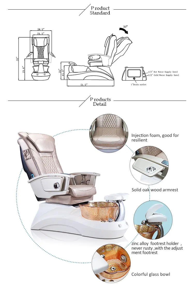Q: What kind of raw material will your factory to use ? A: Our purchasing manager insist on buying high quality resin, fiberglass, PU Acetone proof leather,massage mechanism for high quality pedicure chair;