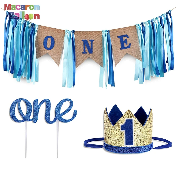 Package include: | 1pc blue happy birthday banner 1pc "one" birthday baby crown 1pc "one" high chair banner 1pc "one" cake topper 1pc 32" blue number 1 foil balloons 12pcs 12" 1st birthday latex balloons(blue,light blue) 6pcs 12" 1st gold confetti balloons 2pcs 12" blue star foil balloons 15pcs 12" latex balloons(blue,light blue) |