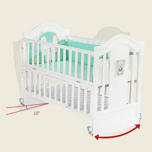 Pine Solid Wood Children's Crib Solid Wood Baby Furniture Cradle Baby cot with netting