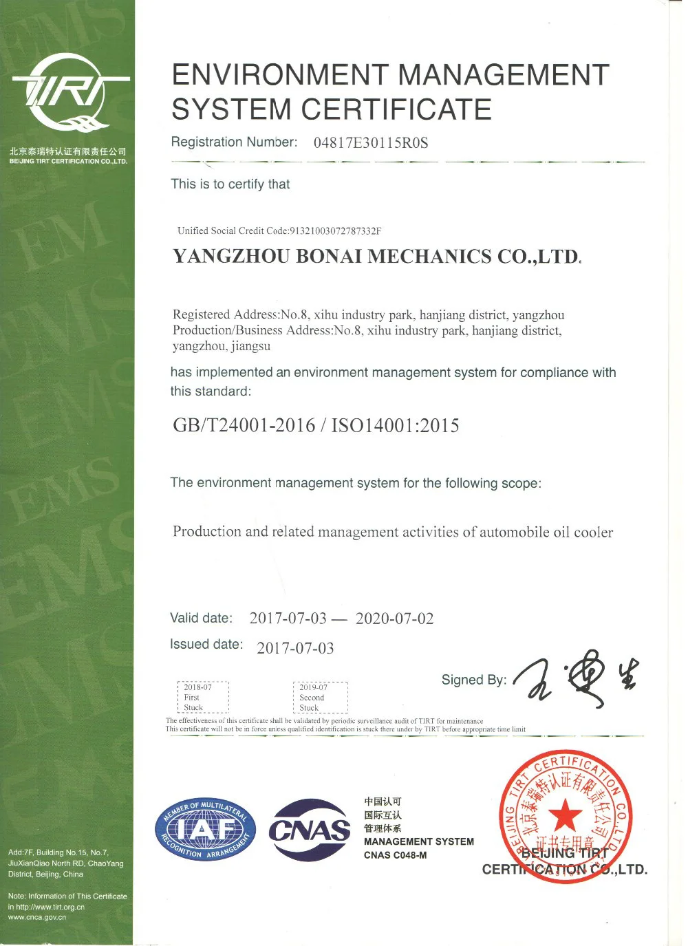 Founded in 2013, SUMEC Yangzhou International Co., Ltd. dedicated to manufacturing and marketing a wide range of oil coolers , EGR coolers and after coolers with ISO certified manufacturing base located in Yangzhou city.
