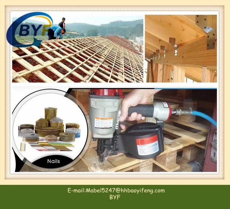 Purpose of coil roofing nail: it is used for hard and soft wood, bamboo pieces, common plastics, cob wall founding, furniture repairing, wooden case packaging, etc. It is widely used in construction and decoration.