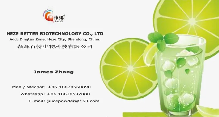 Heze Better Bio-Technology Co., Ltd., founded in 1986, is company of research, production and sales of solid beverage (flavored fruit juice powder and instant ginger tea )
