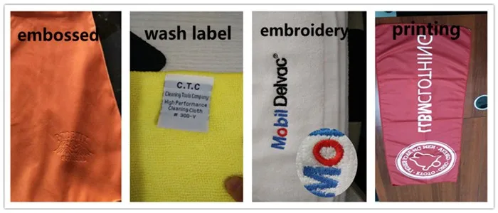 most of the customers want their towel more special, our suggestion is embossed logo, this choice is the best way to take care of the car paint. like the pictures show. paper tapes , paper card or other printing package, you can supply your design.