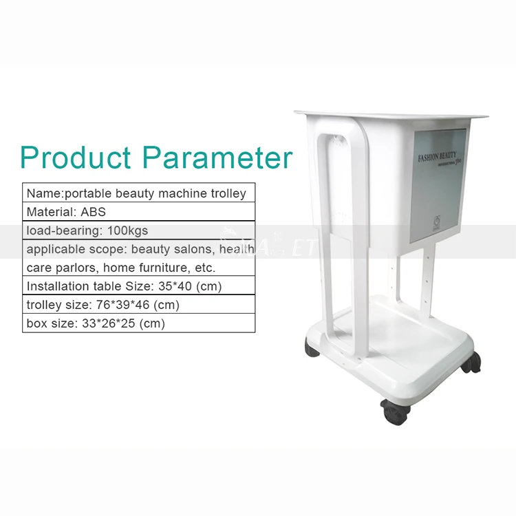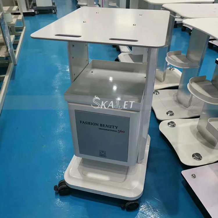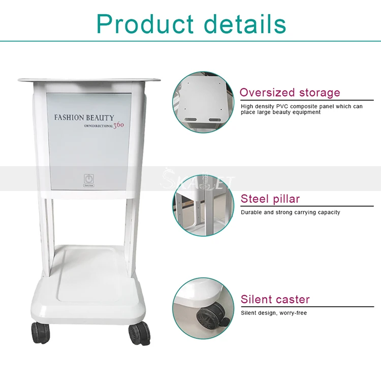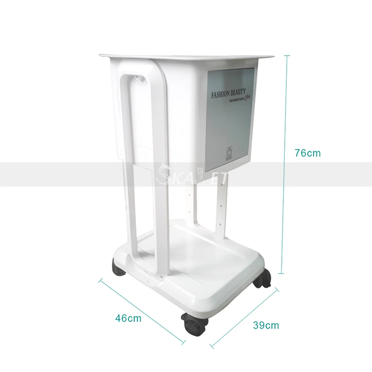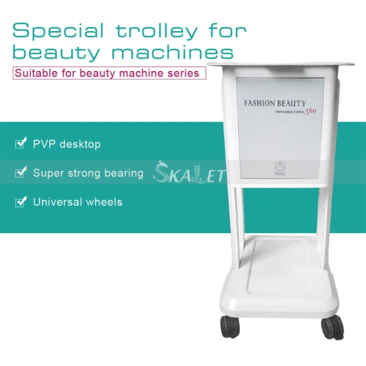 This quality salon beauty trolley was designed with the stylist in mind. It uses aluminum alloy material with assembled easily design. The plate of the trolley is enough to put unoisetion cavitation RF IPL beauty equipments. Trolley is designed with plenty of room to set down the beauty machine ,with four convenient rolling wheels for pushing the trolling.