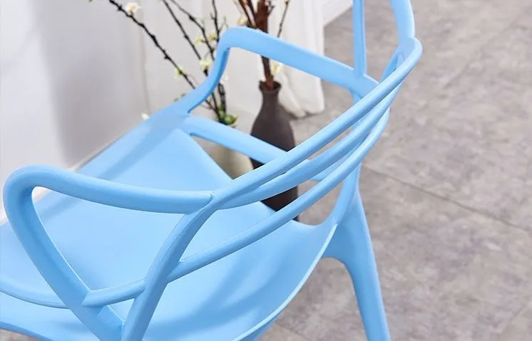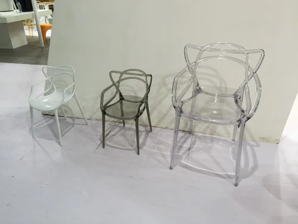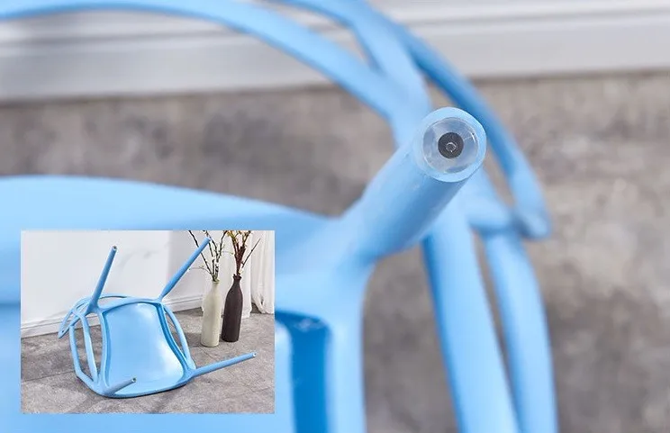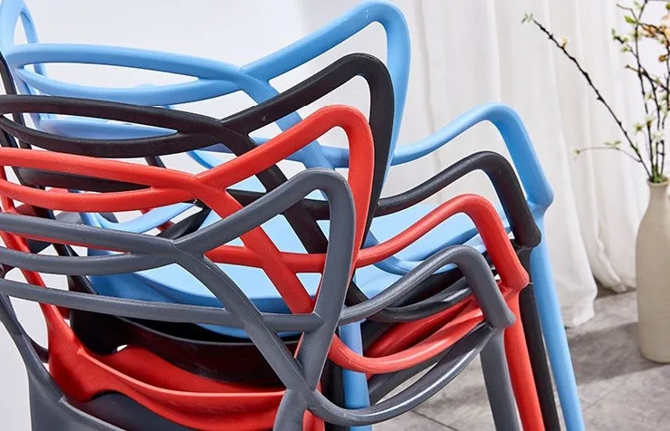 This plastic chair has PC and PP two materials. PC chair has clear and solid colors, and PP chair only has solid colors.