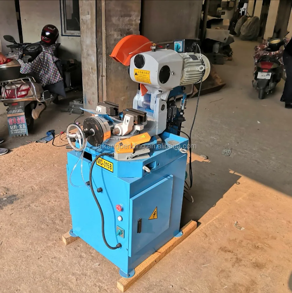 MC-315B Pneumatic Semi Automatic pipe cutting machine pipe cutting angle machine pneumatic circular saw pipe cutting machine, manual feeding, pneumatic automatic clamping, pneumatic cylinder driven the cutting head automatic cutting. The structure is compact and reliable, easy to operate.Suitable cutting material is thin wallthickness pipes,furniture pipes and sporting pipes and solid bars with high efficiency .