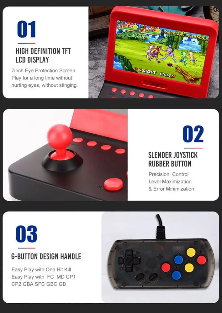Portable fighter Retro Video Game Console 7 inch Display Supporting 2 Players Retro game console